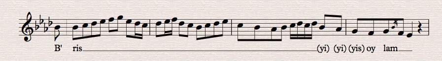 He then sings two quick runs on “os-hi,” in Ukrainian Dorian reminiscent of the fast coloratura of Mordechai Herschman which my instructor, Hazzan Robert Kieval used to liken to a “machine gun.”